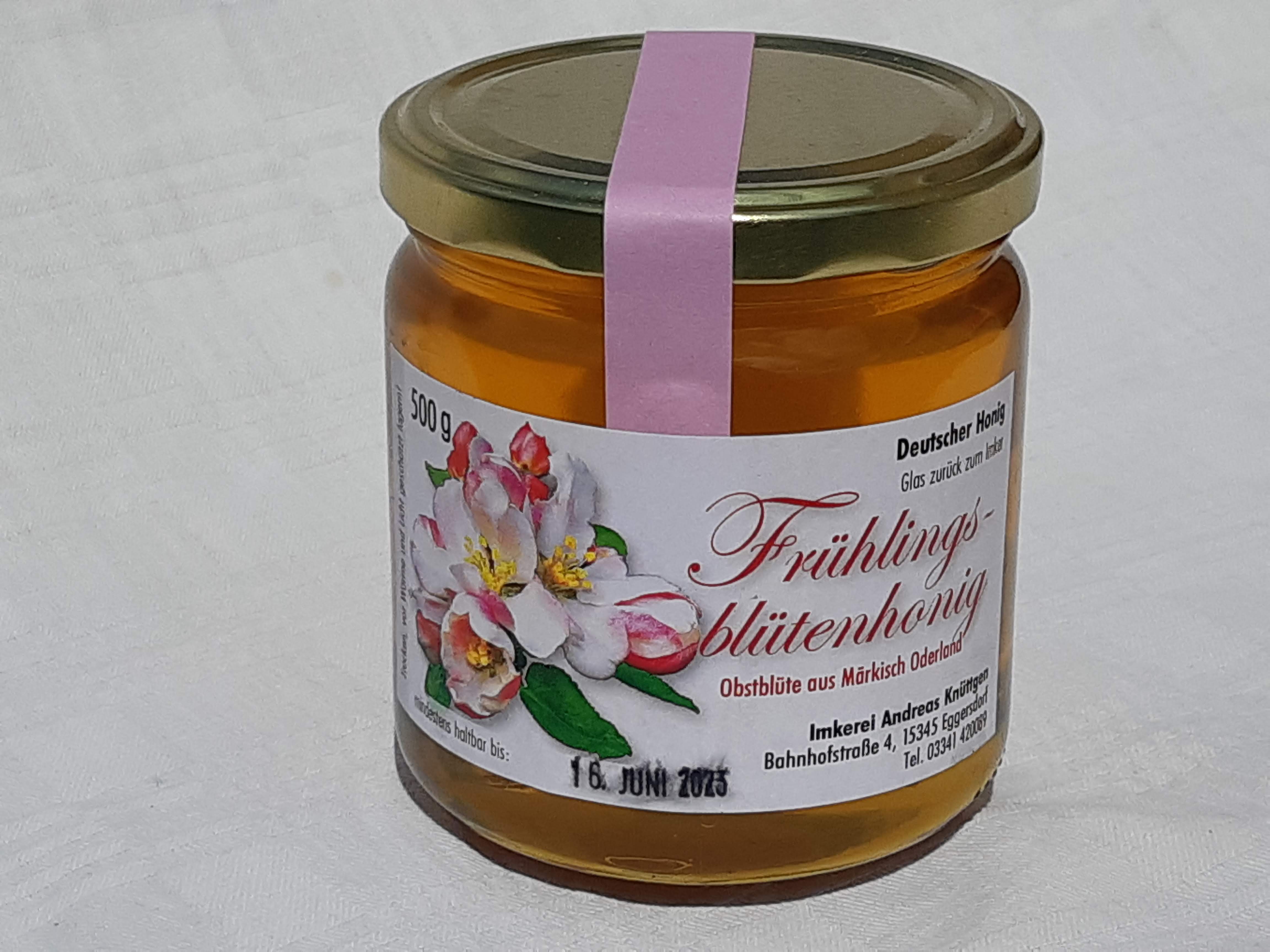 Wir unterscheiden in unserer Imkerei zwei Sorten von Frühlingshonigen (Frühtrachthonig und Frühlingsblütenhonig).Der Frühtrachthonig ist der erste Honig der im Jahr geerntet wird und beinhaltet überwiegend den Nektar unserer frühen Kirsche, der japanischen Zierpflaume und der Apfelbäume in der Region.