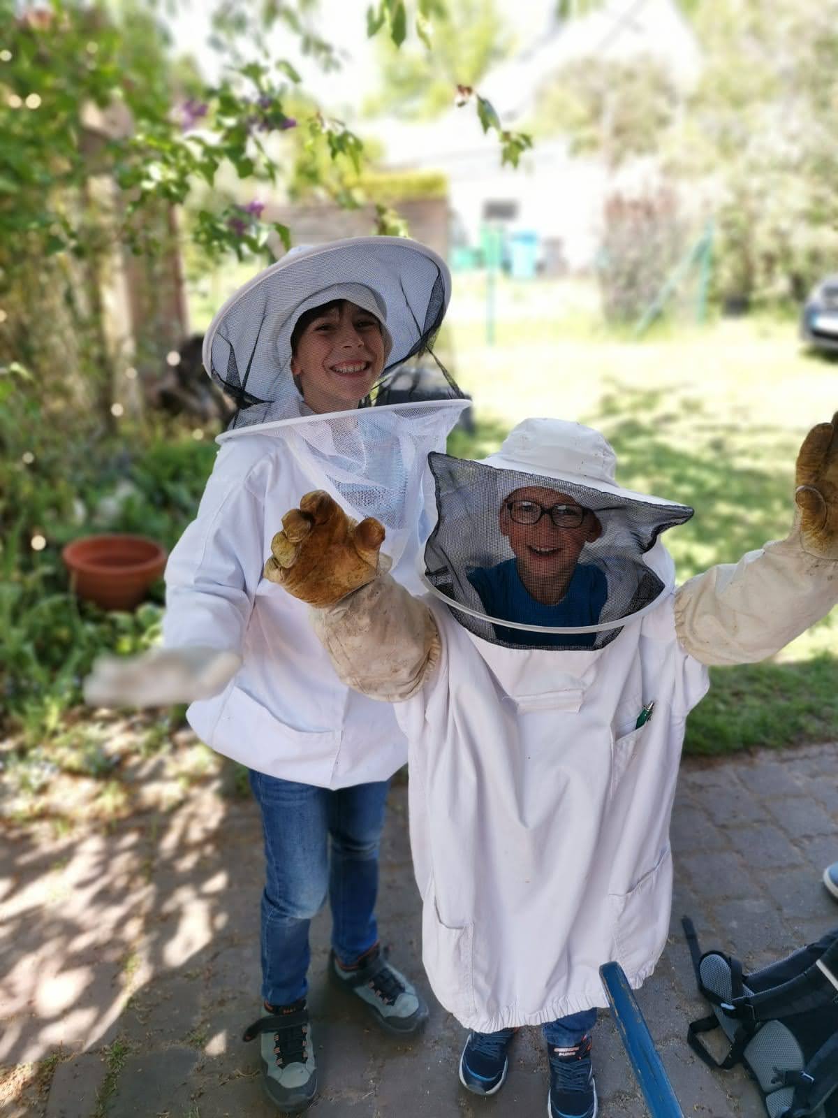 Colin und Ben die Jungimker. Colin begeistert alles was Insekten sind und besitzt inzwischen sein eigenes Volk in einer Ware Beute (Bienenwohnung). Ben als der Jüngste im Bunde findet Bienen schon großartig, aber im Unterschied zu seinem großen Bruder, darf es auch mal etwas mehr „Aktion“ sein. Warten wir die Zeit ab wie sich bei beiden die Interessen entwickeln. Die berechtigte Hoffnung, dass mindestens einer von beiden der Imkerei treu bleibt, sind groß.